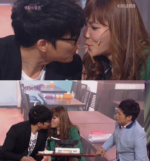 특히 두 사람은 '쫄면키스'를 연출하며 서로 민망함을 감추지 못해 폭소를 자아냈다. (사진-KBS 방송 캡처)