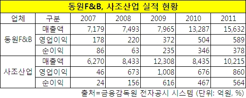 참치캔 시장에서 동원F&B가 외형확대에는 성공했지만 내실은 오히려 사조산업에 밀린 것으로 나타나 대조를 이뤘다.