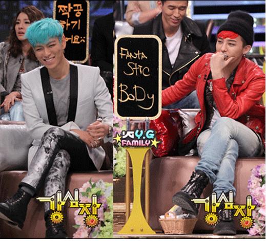 27일 방송되는 SBS '강심장' 녹화에서 지드래곤은 탑이 자신의 몸을 만져보라고 했다고 폭로했다.