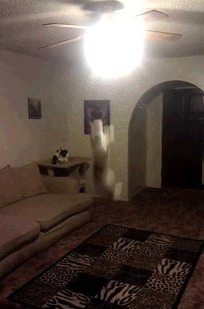 문제는 이 고양이가 점프를 해 거실 천장의 전등을 끈다는 것이다.