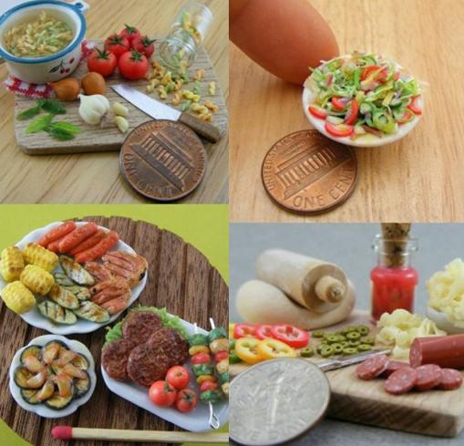 그러나 이 음식들은 동전보다 작은 크기의 작은 모형으로 주방에서 볼 수 있는 칼과 도마, 소시지 피망 등 맛있는 요리와 조리 도구가 만들어져 있다.