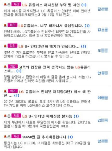 피해 소비자들은 “이용 고객에게 편의를 제공하지 못할망정 LG유플러스 내부 문제로 인한 불편을 왜 우리가 겪어야 하냐”, “똑같이 전산통합 중일 텐데 가입은 수월하고 해지는 힘든 이유는 뭐냐”, “해지 지연으로 미사용 요금이 발생됐는데 정상 과금 부과는 부당하다”는 등의 불만이 폭발하고 있다.