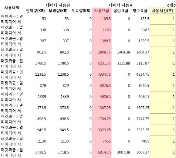 이 씨는 “정상 과금으로 인식됐다면 다행이지만 소비자 입장에서 같은 1초에 대한 청구 요금이 다른 것은 이해하기 힘들었다”고 전했다.