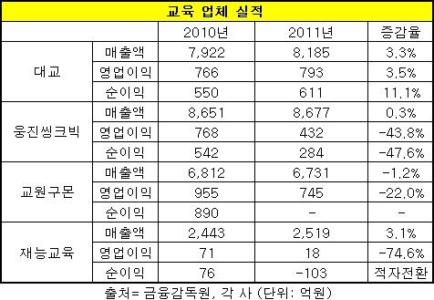반면 라이벌 업체인 웅진씽크빅, 교원구몬, 재능교육은 실적이 급추락했다.