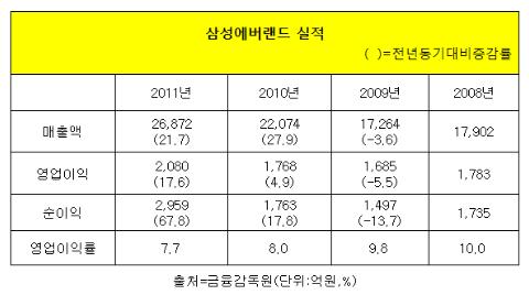 지난해 삼성에버랜드의 매출액은 전년동기대비 21.7% 증가한 2조6천872억원을 기록했다. 같은 기간 영업이익과 순이익은 2천80억원, 2천959억원으로 각각 전년동기대비 17.6%, 67.8% 증가했다.
