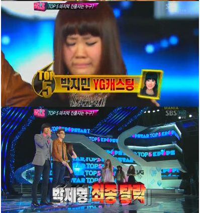 한편 이날 생방송 무대에서는 잭슨 파이브의 'I'll be there'를 부른 박지민과 다이나믹 듀오의 '어머니의 된장국'을 부른 이승훈이 공동 1위를 차지했다. (사진-SBS)