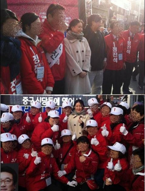 정진석 후보는 2일 자신의 트위터를 통해 "여러분! 오늘 정진석 후보를 응원 와주신 특별 손님은 대한민국 최고의 한류스타 이영애 씨였습니다. 항상 지지해주시는 쌍둥이 엄마 이영애, 남편 정호영님 감사드립니다"라는 글과 함께 사진을 공개했다.