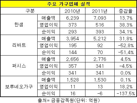 라이벌 리바트, 퍼시스, 보루네오가구 등이 외형만 성장한 것과는 대조적이다.