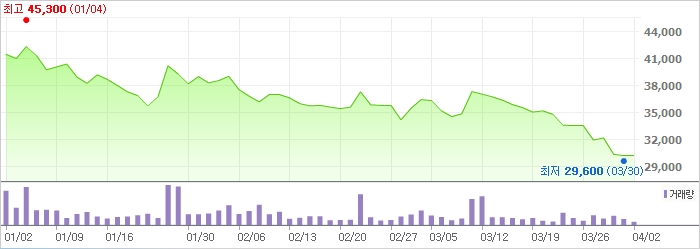 한 때 최고가를 경신하던 삼양식품 주가도 최근 하향세를 보이고 있다. 2일 삼양식품 주가는 전거래일 대비 변동 없는 3만200원에 장을 마감했다.