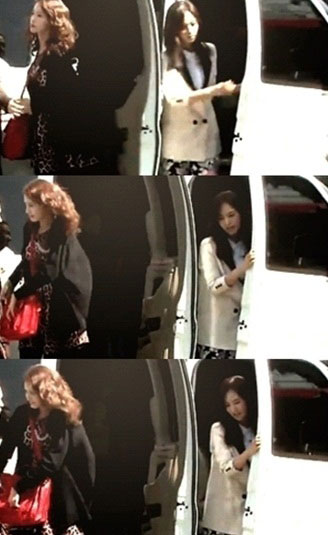 영상 속에서 윤아는 뒷좌석에서 여신 포스로 가뿐히 내려오고 있지만 유리는 조금 다른 모습이다.