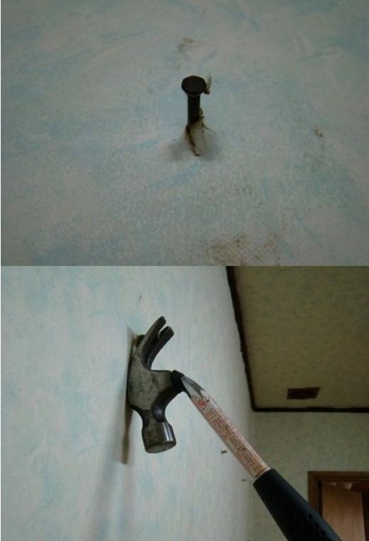 이 '못만 뽑으려 했는데' 사진을 보면 벽에 있는 못을 제거하려다가 망치가 부러져 있다.
