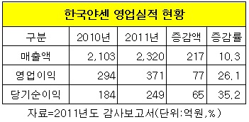 매출액은 전년대비 10.3%, 영업이익은 26.1%나 급증했다. 특히 순이익은 2010년 184억원에서 지난해 249억원으로 껑충 뛰었다.