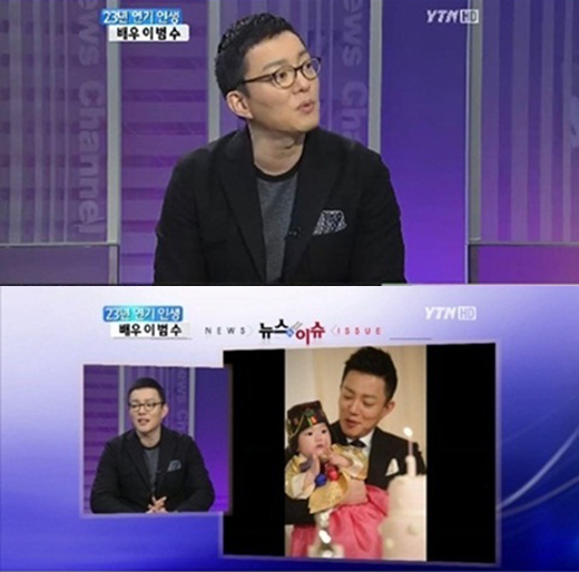 이범수는 4일 방송된 YTN '뉴스 앤 이슈-이슈 앤 피플'에서 "요즘 딸바보란 말이 유행인데 어떤 경우에 본인도 딸바보라고 느끼냐"는 질문에 "집에 돌아가면 당연히 아이를 안아준다"고 답했다.