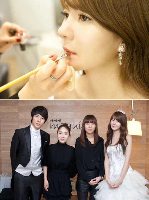 또 깨끗하고 투명한 피부 톤을 바탕으로 피치 골드 톤의 색조를 사용해 우아하고 그윽한 분위기로 순백의 신부 느낌을 자아냈다.