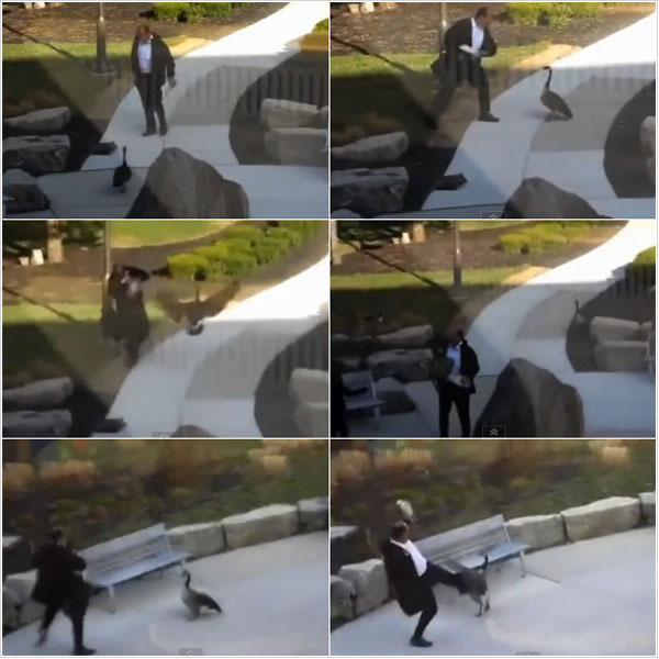 이에 화가 난 남성은 거위에게 발길질을 해대며 보는 이들을 폭소케 했다.