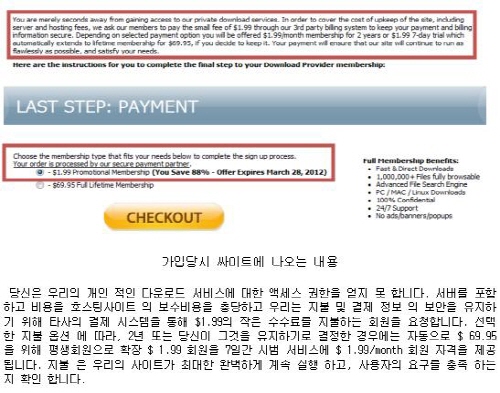 여러 프로그램을 전 세계 사람들이 공유할 수 있는 사이트로서 1.99달러의 비용을 지불하면 단기 회원의 자격을 얻어 파일을 다운받을 수 있다고 쓰여 있었고 오 씨는 아무 의심 없이 H카드를 이용해 결제했다.