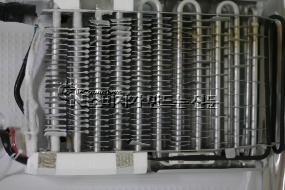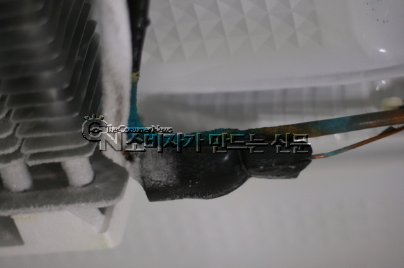 퇴근해서 확인해보니 더 충격이네요. 냉각팬 이음부분에 가스 누수현상이 있습니다. 이건 하루이틀 새어나간 현상이 아니네요.