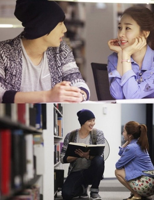 또 다른 사진 속에서 두 사람은 도서관에서 한 권의 책을 함께 보는 모습을 연출하고 있다.