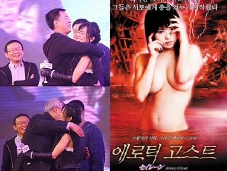 눈길을 모으는 사진은 올 초 아오이 소라가 중국 인기배우 황샤오밍, 왕뤄단 등과 함께 베이징 국가회의중심에서 열린 중국 의류 브랜드 VANCL의 신년회에 참석했을 당시 무대 위에 올라온 기업 고위 관계자들은 기습 포옹을 감행했다.