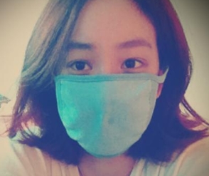 사진 속 정려원은 화장기 하나 없는 얼굴에 감기에 걸릿 듯 파란 마스크를 착용했다.