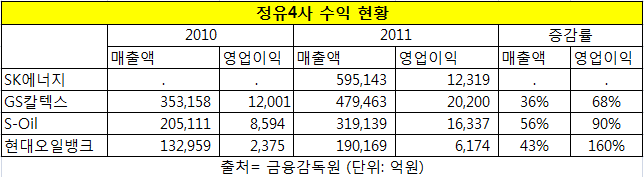 정유 4사는 작년 역대 최고의 매출액과 영업이익을 거뒀다.