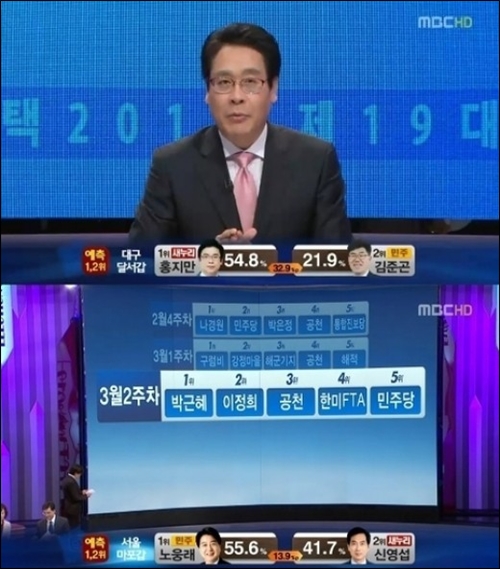 이날 관심 지역의 연령대별 분석 과정에서 그래프가 바뀌어 나오는 방송 사고가 일어났고 곧바로 MBC 측이 공식 사과에 나섰던 것.