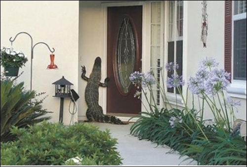이 ‘오빠 문 좀 열어봐요’ 사진에는 악어 한 마리가 한 주택의 문 앞에 서 있다.
