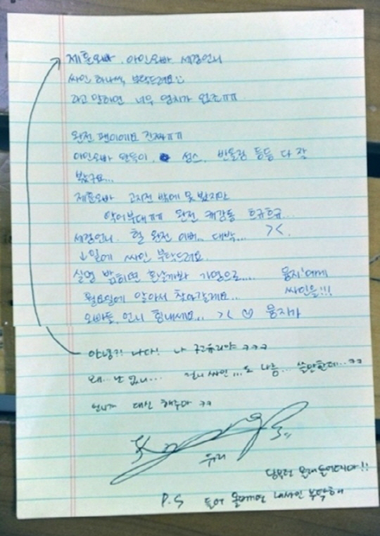 결국 사인을 직접 한 유리는 "담부턴 몰래 들어오지마. 들어올거면 내 사인 부탁해"라며 귀여운 뒤끝을 보였다.