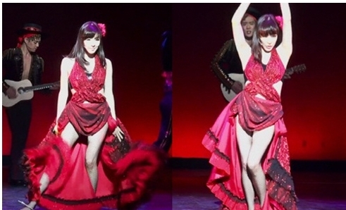 포착된 사진은 티파니가 출연 중인 뮤지컬 ‘페임’의 한 장면. 무대에서 강렬한 붉은색 드레스를 입고 옆구리와 허벅지가 그대로 노출된 티파니의 의상에 누리꾼들은 더욱 관심을 보이고 있다.