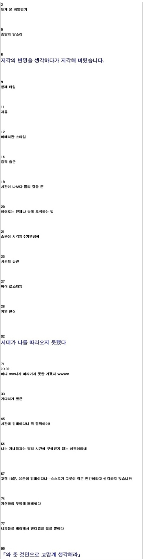 최근 온라인상에 ‘지각을 멋진 말로’라는 제목의 게시물이 올라아 누리꾼들의 폭발적인 반응을 불러 일으켰다.
