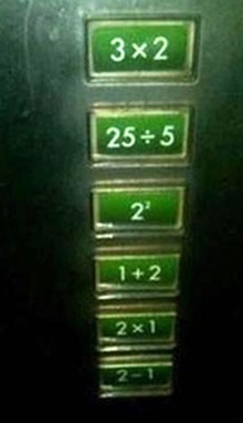 이 사진 속 엘리베이터 버튼은 1층은 2-1, 2층은 2*1 , 3층은 1+2 같은 공식으로 적혀 있다. 층수를 누르려면 산수부터 해야 한다는 소리다. 이런 독창적인 아이디어에 대해 사진 게시자는 '흔한 엘리베이터 버튼'이라는 반어적인 제목을 달은 것이다.