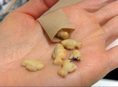 사진 속 붕어빵은 손바닥 위에 올려질 만큼 작은 사이즈의 미니어처로 실제 붕어빵을 그대로 축소한 모양을 하고 있다.