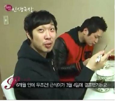 하하는 친구 근식이에 대해 “우리가 어렸을 때 둘 중 한 명이 결혼하면 나머지 한 명이 6개월 안에 무조건 결혼하기로 했다”고 전하며 “근식이가 지난 3월 4일 결혼했다. 친구가 3월에 결혼했으니 약속대로 5개월 안에 결혼을 해야 한다"고 말했다.