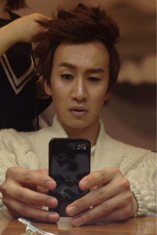 배우 이광수가 아이라인 그리는 남자 사진을 공개했다.