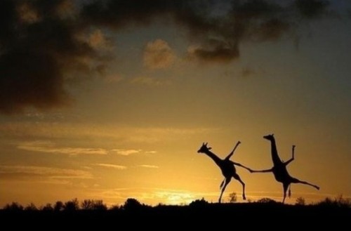 이번에 공개된 '기린의 난투극' 사진에는 두 마리의 기린이 석양빛으로 가득 찬 들판 위에서 난투극을 벌이고 있는 모습이다.