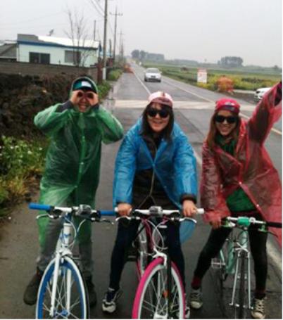 이효리 장범준 하이킹 사진에 누리꾼들은 "우비 입고 하이킹 추웠겠다" ,"신나보여", "제주도 하이킹 부럽네요"등의 다양한 반응을 보였다. (사진-이효리 트위터)