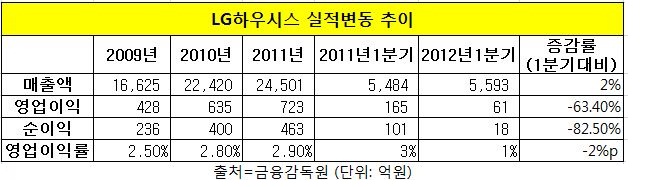 극심한 건설경기침체 속에서도 선방해온 견조한 성장세가 한풀 꺾인 것이다. 그러나 LG하우시스의 실적 부진은 일시적이라는 분석이 지배적이다. 2분기는 다시 핑크빛 전망을 받고 있다.