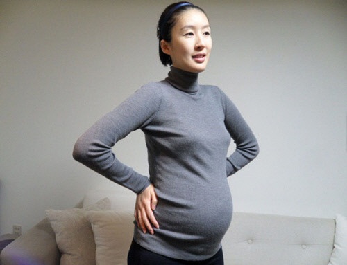 홍진경이 공개한 만삭사진은 불룩 나온 배를 빼고는 몸매가 임산부임이 믿겨지지 않을 만큼 날씬해 눈길을 끌었다.