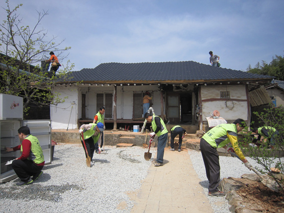 15명으로 이뤄진 집수리 봉사단은 이날 박 할아버지 집의 장판과 벽지를 바꾸고, 비가 새는 지붕을 고치고 보일러를 새로 들이고 마당에 보도블록도 다시 깔았다.