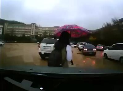 영상에 따르면 비가 오는 한 운동장에서 자신의 딸로 집으로 향하던 이 여성은 이내 앞을 지나가던 여학생을 보지 못하는 듯 그대로 치고 만다.