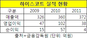26일 금융감독원 공시자료에 따르면 하이스코트는 꾸준한 매출 상승으로 외형을 늘려가고 있다.