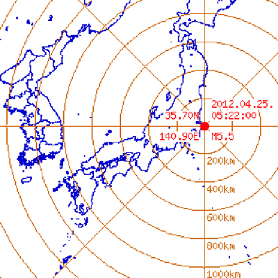 일본 기상청은 25일 오전 5시 22분 일본 혼슈 지바현 동쪽 72km 해역을 진원으로 하는 지진이 발생했다고 밝혔다.