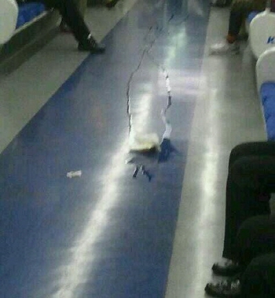 사진 속에는 지하철 통로 한 가운데에 휴지로 쌓여진 배설물이 놓여져 있다.
