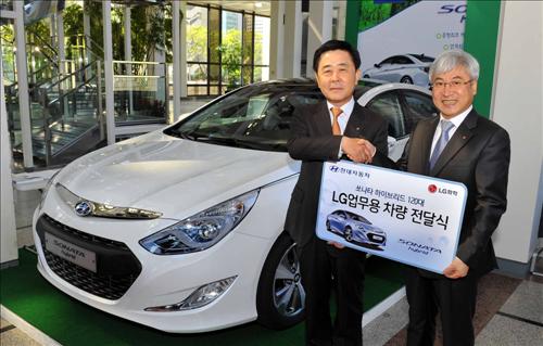 현대차와 LG그룹은 지난달 친환경 업무 협약을 체결하고 판촉, 전시이벤트를 공동진행하는 등 하이브리드카 저변확대를 위해 노력하고 있다. 쏘나타 하이브리드에는 LG화학이 만든 배터리가 탑재됐다.