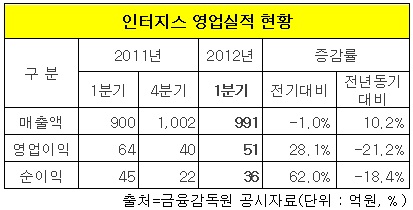 인터지스 관계자는 "지난해 1분기 부산하역에서 일시적인 수익이 발생했기 때문에 작년 1분기에 비해서는 성적이 다소 부진했지만 4분기에 비해서는 내실이 탄탄해졌다"고 설명했다.