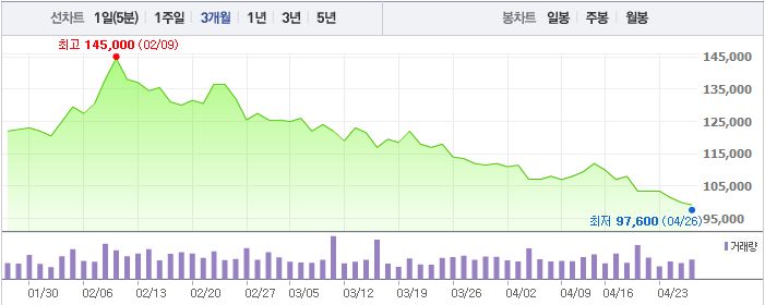 한편 1분기 실적 발표와 함께 S-Oil의 주가는 최근의 하락세를 이어갔다.S-Oil 주가는 26일 종가기준으로 9만9천200원으로 전일대비 800원, 0.8% 하락했다.