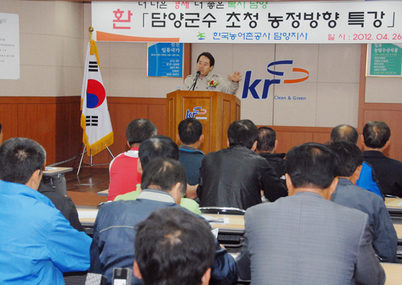 최형식 담양군수가 이장과 쌀전업농 등 농업인을 대상으로 ‘담양의 농업과 농촌의 미래전략 및 2012 주요 농정시책’에 대한 특별강연을 실시했다.