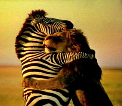 공개된 사진 속에는 백수의 왕 사자와 초식동물 얼룩말이 다정하게 포옹하고 있는 모습이 담겨있어 생태계 먹이사슬 균형이 깨진 듯 보인다.