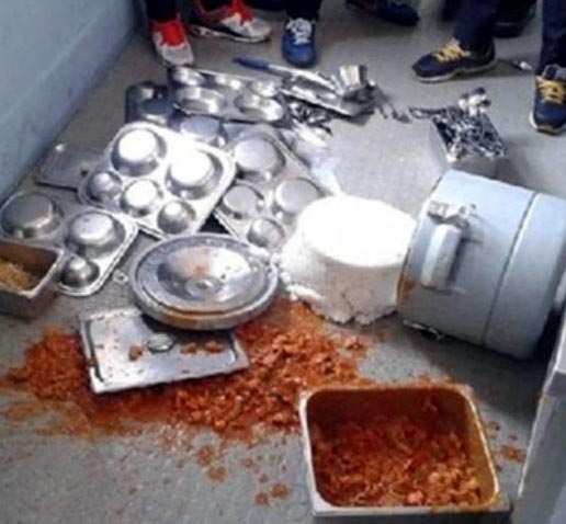 이에 바닥에는 식판과 밥과 반찬들이 엉망으로 엉켜있어 보는 이들을 안타깝게 하고 있다.