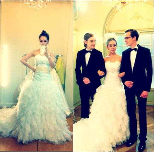 공개된 사진에서 백보람은 웨딩드레스를 입고 두 남성과 팔짱을 끼고 있다. 백보람은 이 사진에서 "팔짱 껴줄 사람 찾았습니다! 좋으다"라고 덧붙였다.